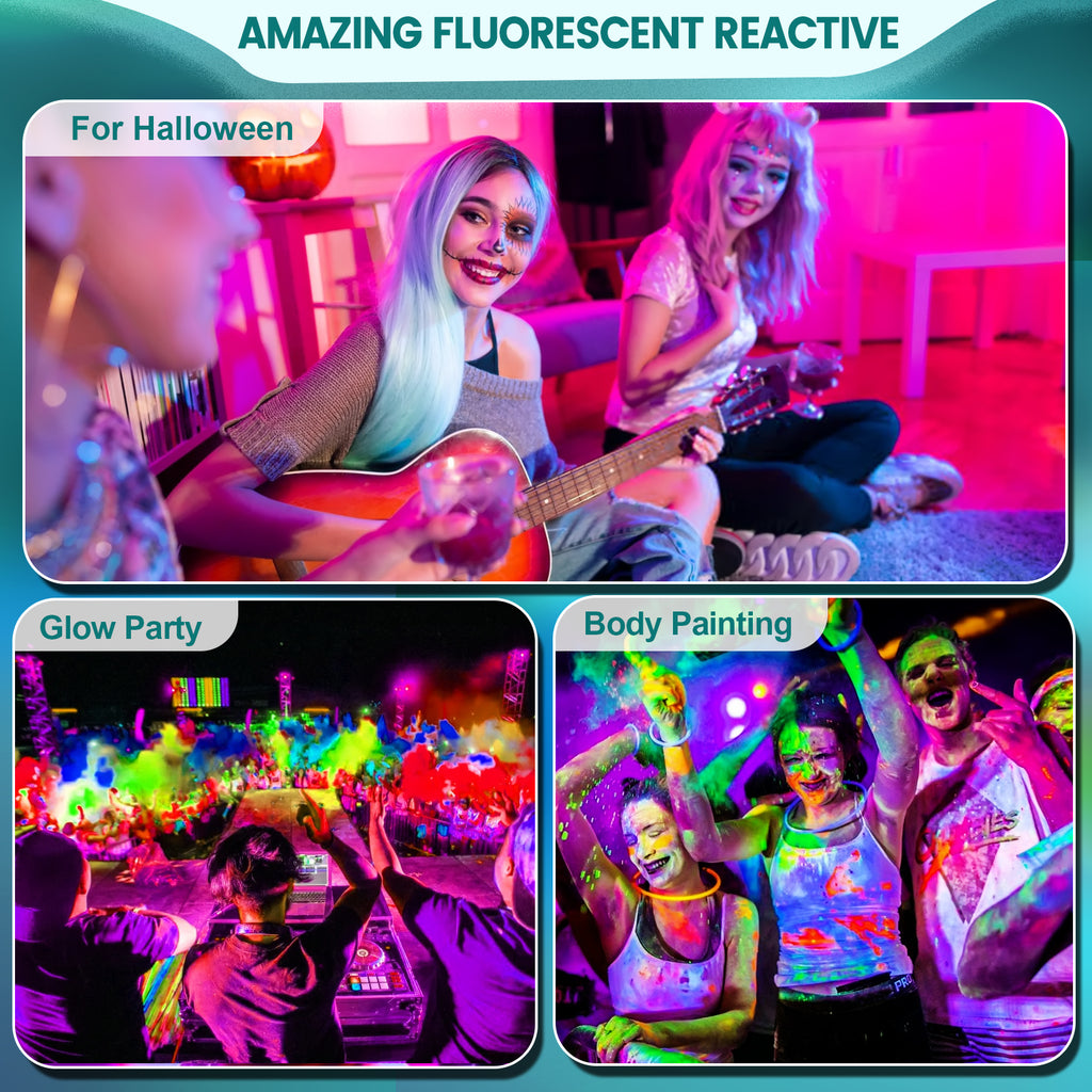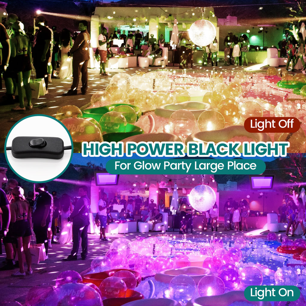 WIDE APPLICATION: This high intensity black light is for glow party large room, classroom, Halloween Christmas decor, DJ club, tapestry party, yard, house, neon party, glow in the dark party, fluorescent poster, body paint, haunted house cave, gaming room, glow balls, aquarium, stage Lighting etc
