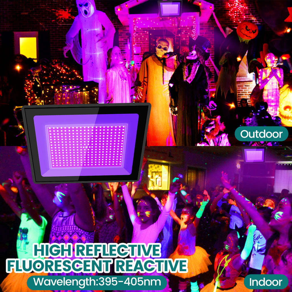 OUTDOOR IP66 WATERPROOF DESIGN: IP66 Waterproof rating, also each black light lamp body can protect against corrosion, ideal for both indoor and outdoor use. Perfect for Christmas, Halloween, club, party, aquarium, band, bar and etc. Note: The temperature of the case will rise accordingly after prolonged use (this is normal), please do not touch it directly with your hands