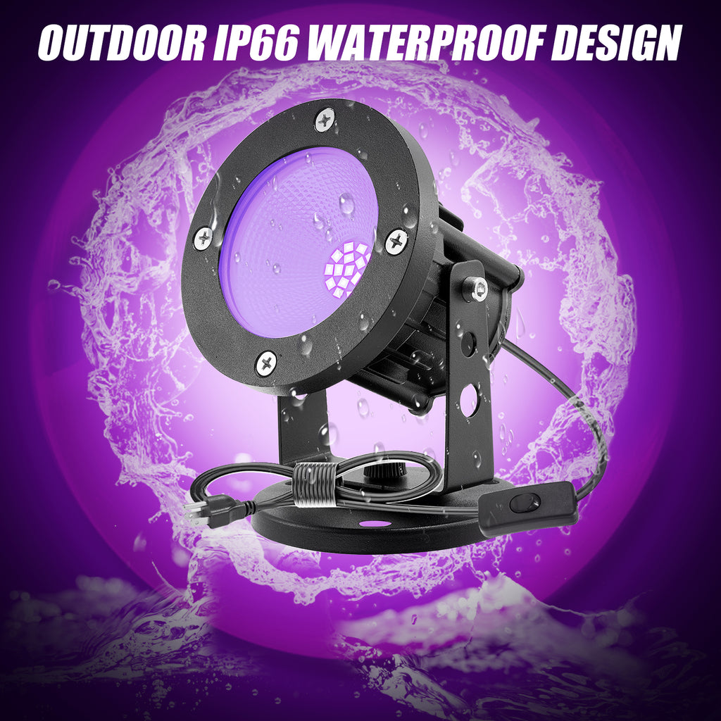 OUTDOOR IP66 WATERPROOF DESIGN: IP66 Waterproof rating, also each black light lamp body can protect against corrosion, ideal for both indoor and outdoor use. Perfect for Christmas, Halloween, club, party, aquarium, band, bar and etc. Note: The temperature of the case will rise accordingly after prolonged use (this is normal), please do not touch it directly with your hands