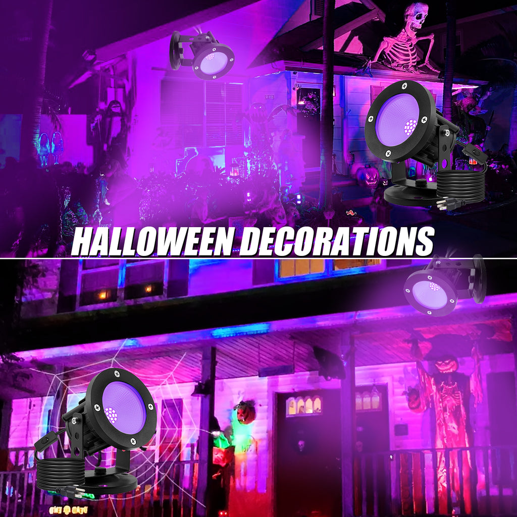 POWERFUL BLACK LIGHTS: Each high watt black light spot light outdoor outside with high-power blacklight LED chips, which ensures the high bright light output. With 120 degrees wide beam angle, each high wattage outdoor blacklight spotlight could light up a large space, great for widely covering a large room, classroom, yard, stage etc
